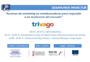 El próximo 25 de febrero tendrá lugar el Desayuno Invat·tur en el que Diego Alonso, Hotels Relations Trivago – Industry Management Spain, abordará que acciones de marketing se pueden realizar en los metabuscadores actuales, para responder a las tendencias del mercado.
