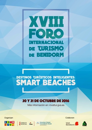 El XVIII Foro Internacional de Turismo de Benidorm, tiene como lema “Smart Beaches”, consolidando así su especialización en torno a la temática de destinos turísticos inteligentes y aplicándola al principal recurso turístico de la Comunitat Valenciana, el litoral.