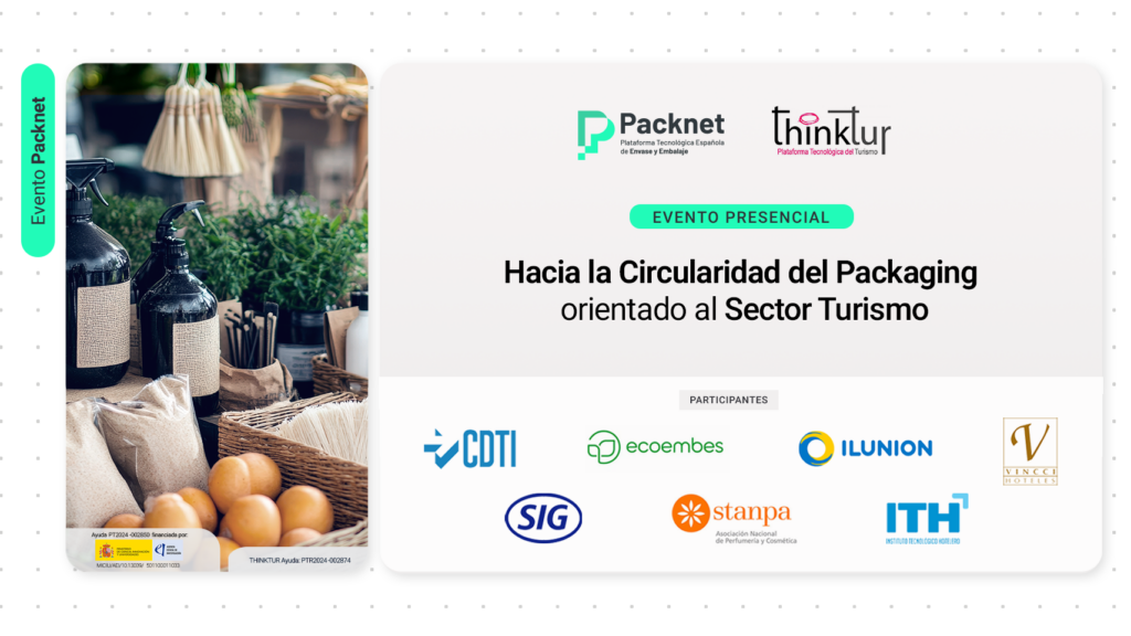 Esta jornada, organizada por las plataformas tecnológicas PACKNET y THINKTUR con el apoyo de la Agencia Estatal de Investigación, reunirá a expertos y profesionales de los ámbitos del envase y embalaje y del turismo con el objetivo de impulsar la transición hacia modelos más sostenibles. Durante la sesión, se abordarán los principales retos y oportunidades que presenta la economía circular para el packaging en el sector turístico, combinando una visión estratégica con ejemplos prácticos, buscando generar sinergias que aceleren la innovación entre los sectores representados por ambas plataformas.