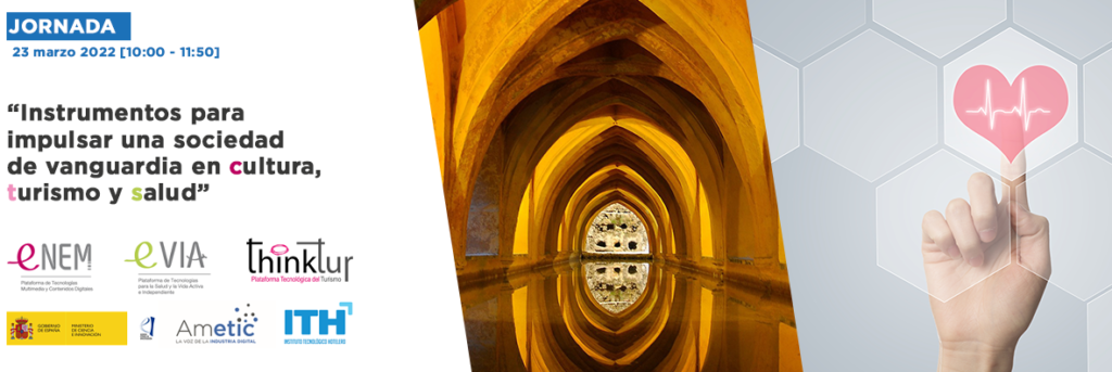 El próximo 23 de marzo a las 10:00 h (Madrid, CEST) las Plataformas tecnológicas eNEM, eVIA y ThinkTur realizarán un webinar conjunto que lleva como título «Instrumentos para el impulsar una sociedad de vanguardia en cultura, turismo y salud»