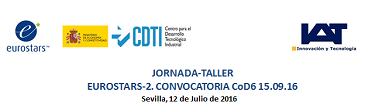 El próximo día martes 12 de julio tendrá lugar en IAT Sevilla, una Jornada-Taller EUROSTARS-2. Convocatoria CoD6 15.09.16 con celebración de reuniones bilaterales entre empresas y técnicos del CDTI. En el siguiente enlace pueden descargar la agenda de dicha jornada.