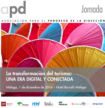 Estas importantes cuestiones y otras que surjan en el coloquio serán analizadas en la Jornada “La transformación digital del turismo: UNA ERA DIGITAL Y CONECTADA”, organizada por la Asociación para el Progreso de la Dirección (APD), con la colaboración de lInstituto Madrileño de Formación (IMF) y el patrocinio de Unicaja.